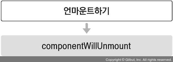 - componentWillUnmount: 컴포넌트가 웹 브라우저상에서 사라지기 전에 호출하는 메서드입니다.