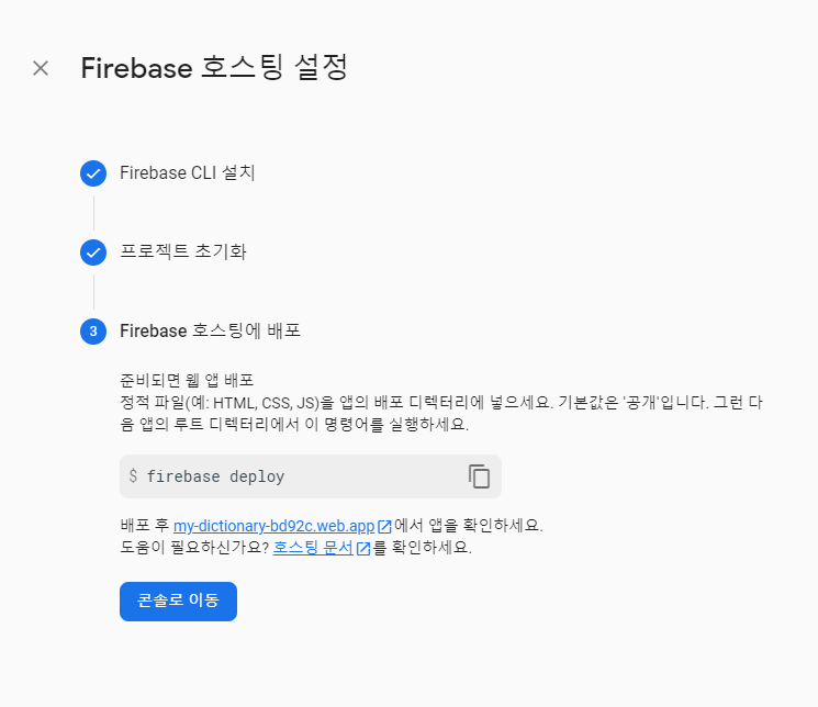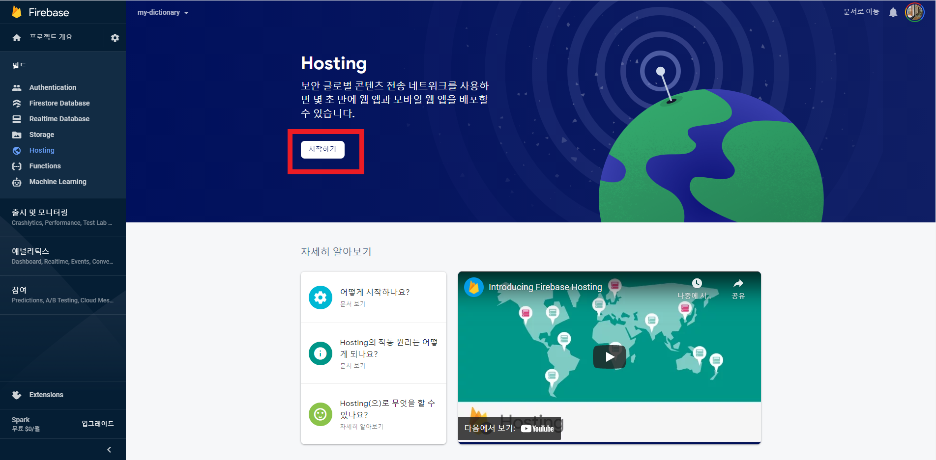 왼쪽 메뉴에 hosting 탭을 누릅니다.