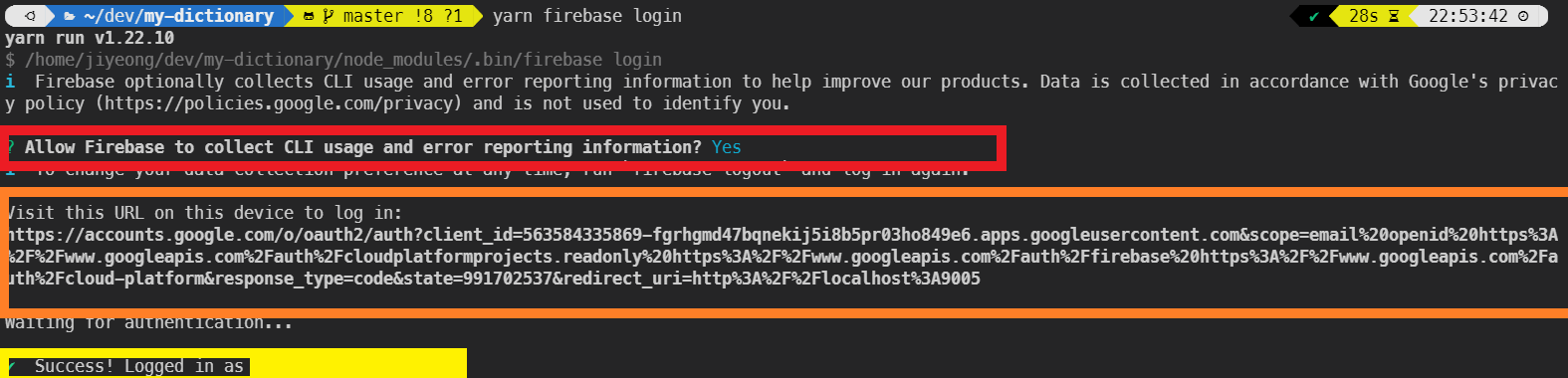$ yarn firebase login