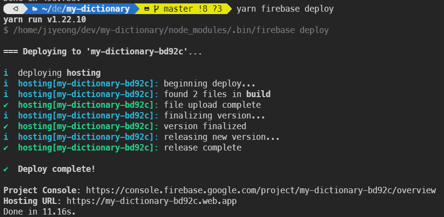 $ yarn firebase deploy