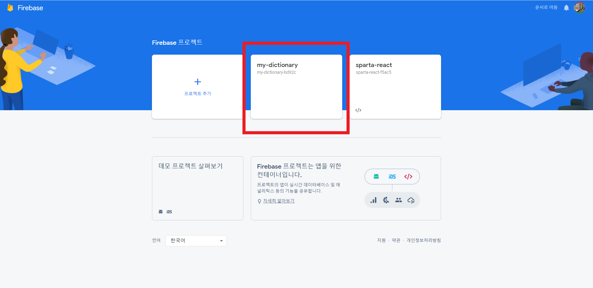 호스팅할 프로젝트를 클릭합니다.