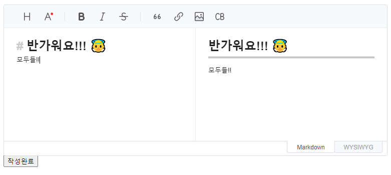 NHN에서 만들어서, 한글에 최적화가 잘 되어있고, 일단 예쁘고, 마크다운 편집기로 핫한 에디터다. 심지어, 코드 하이라이팅이라던가 컬러같은 플러그인들이 잘 되어있다! 설치하는 방법이 너무 간단해서 놀랬다... 😮