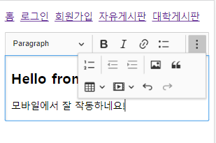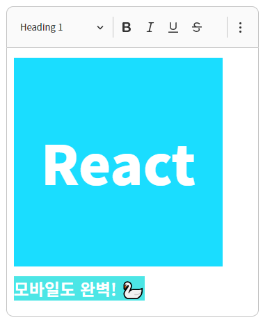 - Quill : CKEditor처럼 모바일/웹 둘다 가능하지만.. 수 많은 툴바들이 더보기 버튼 안으로 숨겨지지 않음...