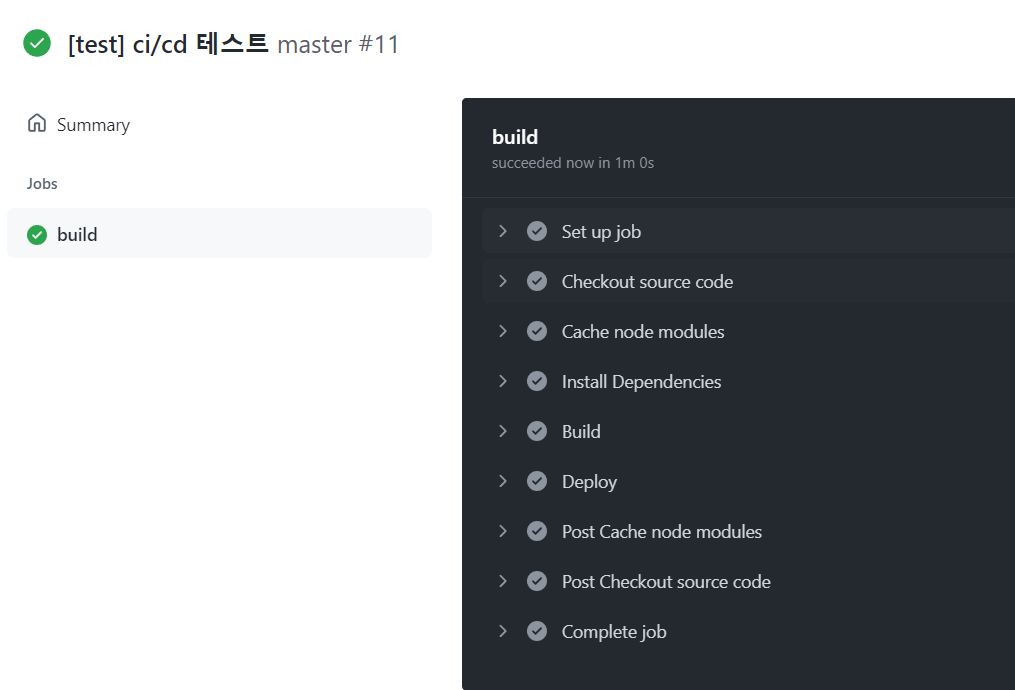 이제 아래와 같이 push, pull request 이벤트 요청이 있을때마다 자동으로 배포가 되는 모습을 볼 수 있습니다!