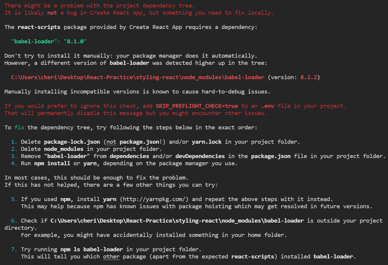 Describe the bug After creating a new project with create-react-app yarn start and yarn test do not run. There is a conflict with babel-loader version. Changing the line in package.json to "ba...