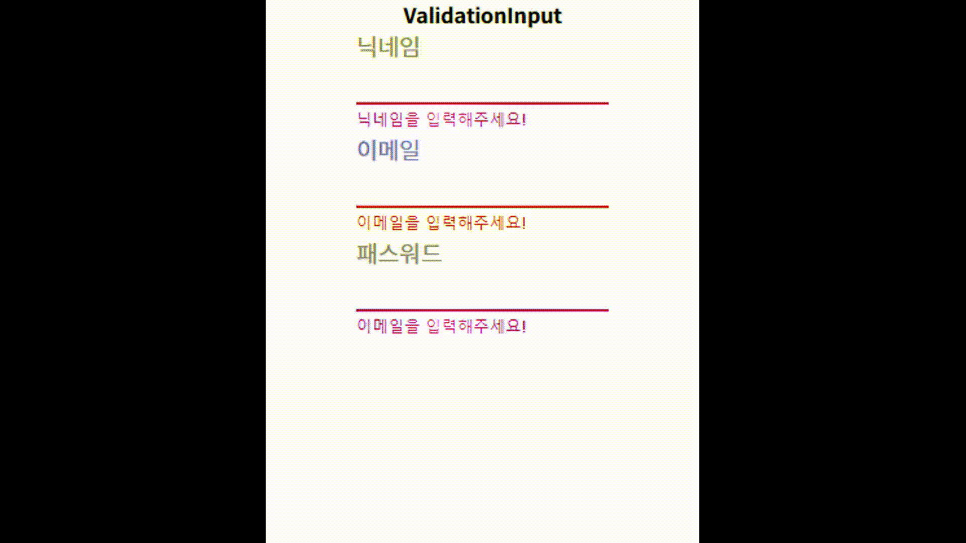 - isError : true면 material의 TextField의 error 기능을 작동시키는 역할. (이를 통해, 인풋의 색깔이 빨갛게 바뀐다.)