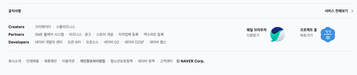 ex) 로그인/가입하기, 고객센터, 사이트맵, 장바구니, 회사 소개, 연락처, 도움말