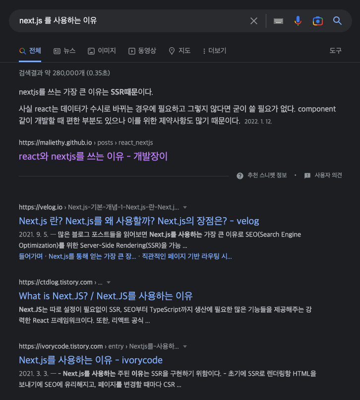 google에 입력해보면 대부분 SSR하려고 쓴다라는 포스팅 뿐이다. (물론 이 외 이점들이 있다.)